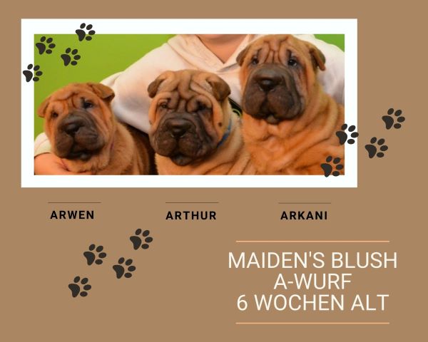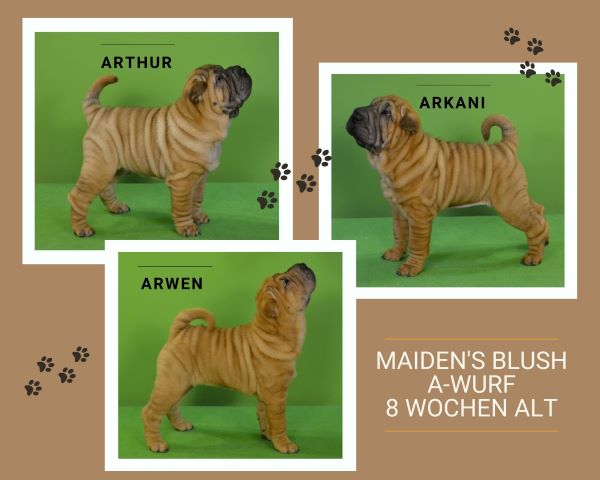 Unser A-Wurf Am 3. Oktober 2021 mitten in der Nacht war es soweit, Paula hat ihren ersten Wurf zur Welt gebracht! Hier stellen sich die Welpen offiziell vor:Rüde Arthur:Brushcoat / FawnHündin Arwen:Brushcoat / Red-FawnHündin Arkani:Brushcoat / Red-Fawn Die Zeit ist vergangen wie im Flug… Alle Welpen haben ein wunderbares Zuhause gefunden.Arkani bleibt bei uns und wird zukünftig als „Lotte“ in unserem kleinen Rudel leben. Die stolzen Eltern des A-Wurfs Jazzy‘ Pei PaulaBrushcoat Red-FawnDNA-typisiert,vollzahniges Scherengebiss,HD, ED, PL untersucht,POAG/PLL, SPAID getestetEltern:Jazzy‘ Pei MouniganJazzy‘ Pei Nausicaa Precious Hug Boeing DreamlinerBrushcoat FawnDNA-typisiert,vollzahniges Scherengebiss,HD, ED, PL untersucht,POAG/PLL, SPAID getestetEltern:Precious Hug BoeingShowbiz Ride Like The Wind